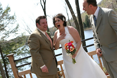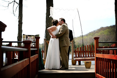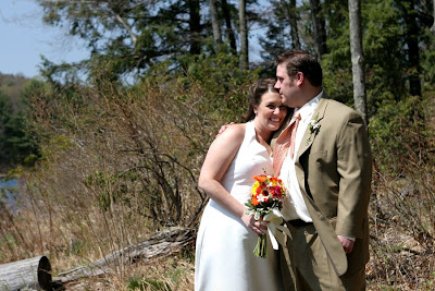 The ceremony was at the most beautiful location in Colebrook–Camp Jewell. There is a gorgeous spot built into a hillside overlooking the water. While the weather was less than perfect when we met up that morning, the clouds broke just in time for them to exchange vows.