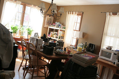 This is our makeshift kitchen in the dining room. It’s a little better organized now, but no less crowded or annoying! Stay tuned…