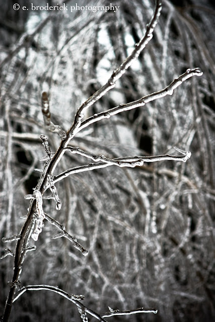 This is the view from my driveway Friday morning. The funny thing–this is nothing! Parts of town looked much worse than this but it really wasn’t safe for me to be out shooting for much of the weekend since trees and limbs continued to fall, along with huge chunks of ice. We did not start to thaw out until late Sunday. I wish I could have walked around on Saturday to document more of this. The sky was sunny and blue and the ice was just brilliant but I was only in town for a few minutes on my way out to an engagement shoot. Finn and I stayed at my parent’s all weekend where we could enjoy heat, electricity and water. Tim “roughed it” in Hartland by himself. He likes to complain about it, but I think he kind of liked it. Playin’ like he was Jeremiah Johnson or something.