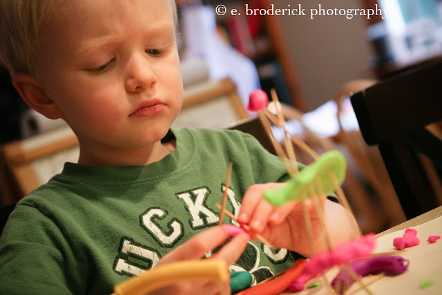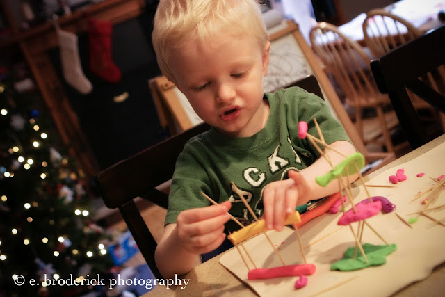 Building a city from the clay he got for his birthday: